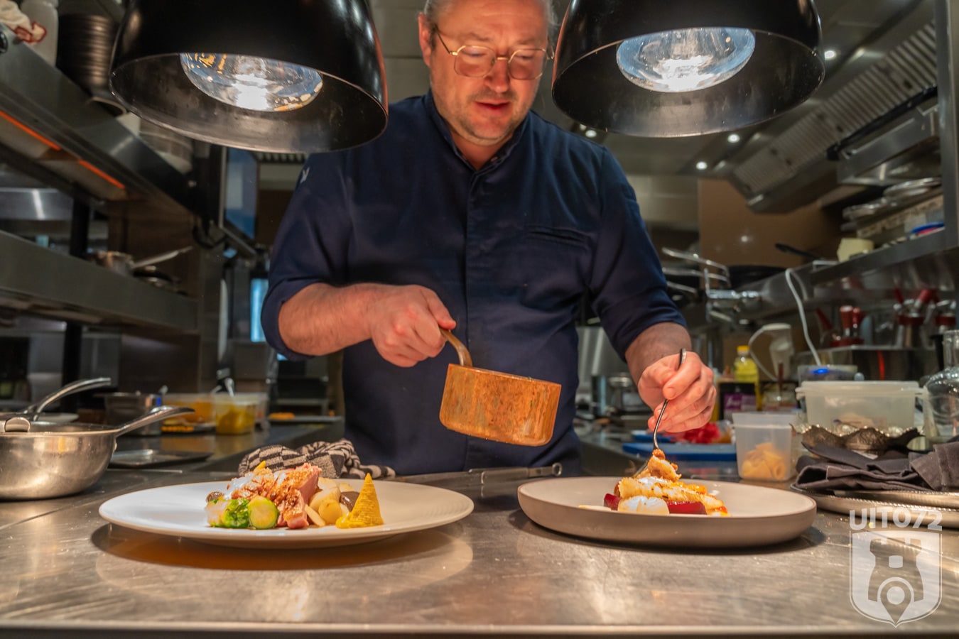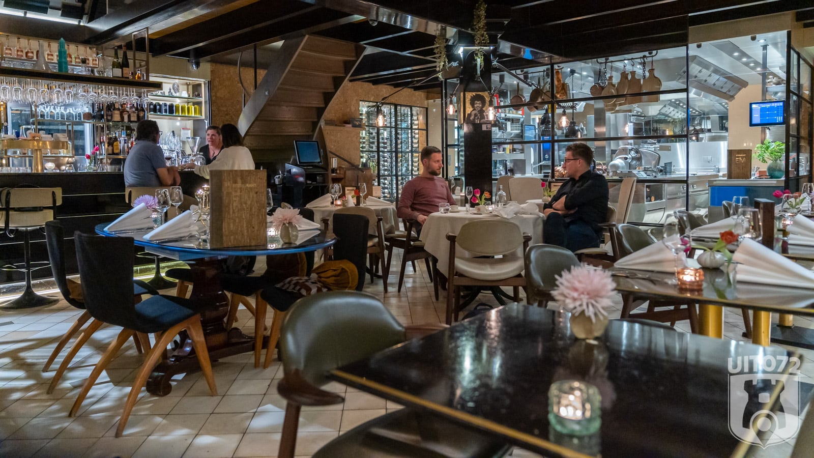 Beneden is vanaf elke plek de keuken, waar chef Victor zijn kookkunsten vertoont, goed zichtbaar. Naast de keuken zien we een prachtige walk-in wijnkast. Wijn staat bij ElVi goed op de kaart en dat is mooi te zien.