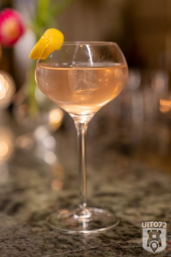 Aan de bar krijgen we een ElVi spritz – limoncello met bruiswater – en ondergetekende een virgin aperitief met rabarber. Beide een lekkere binnenkomer.
