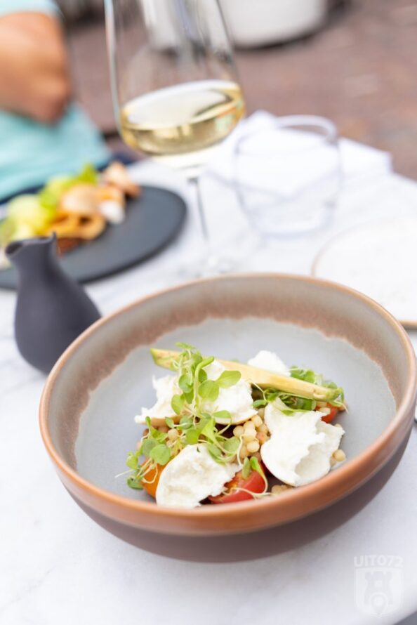 De gerookte mozzarella is minder romig en zacht van binnen dan je van buffelmozzarella gewend bent. Wel leuk dat deze mozzarella uit Twente komt. De tomaatjes worden biodynamisch geteeld in Zuid-Holland.