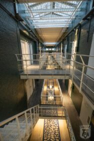 Tussen de gangen door mogen we het pand eens goed bekijken. Onze gids Dennis vertelt dat hij een groot deel van zijn jeugd naast de gevangenis heeft gewoond. Zijn vader was er cipier en als kleine jongen mocht hij regelmatig eens binnenkijken.