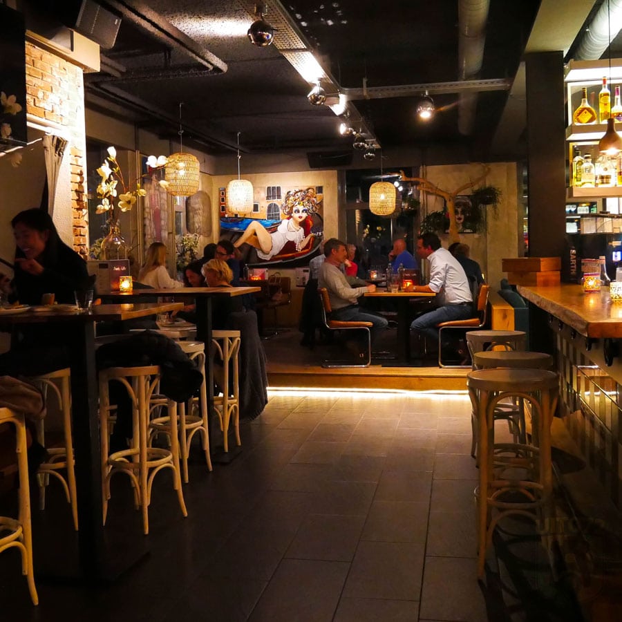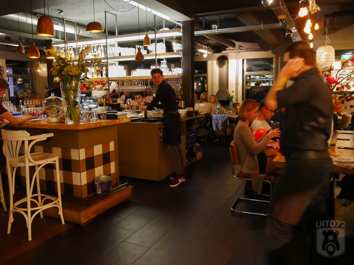 Bij binnenkomst worden we vriendelijk ontvangen en naar onze tafel begeleid. Het is druk, alle tafels zijn bezet. Toch zit je niet op elkaar. Fijn!