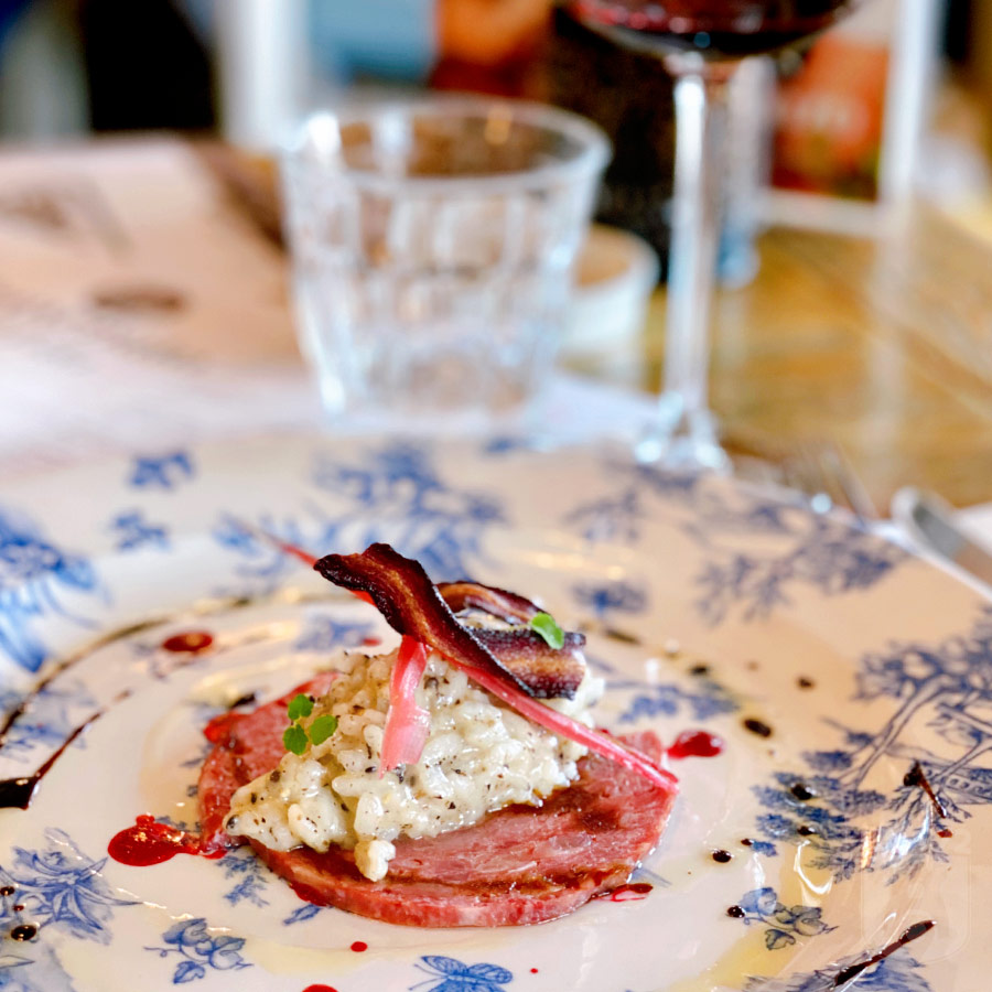 Spijs: Salame corro d’oca | truffelrisotto | rode snijbiet
