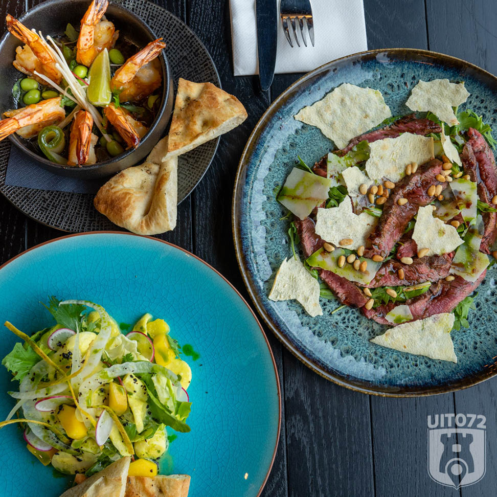 In een knusse bistro setting begin je met coquille & zeebaars, waarna je 3 gerechtjes kiest om te delen. Met een brownie toe heb je met z’n tweetjes een prima 3 gangenmenu voor € 75.