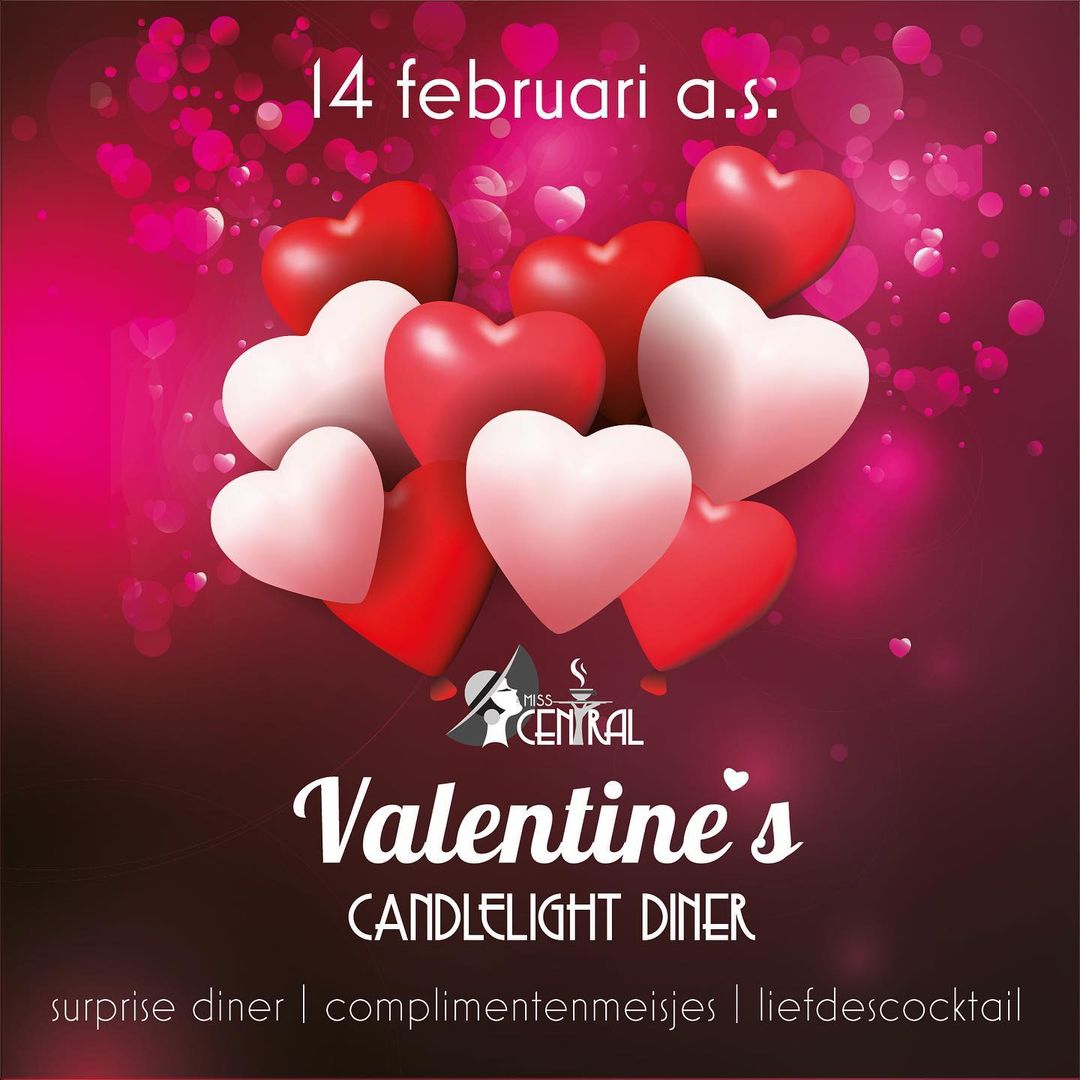 Lichten uit en kaarsen aan: kom op Valentijnsdag genieten van het Miss Central Candlelight Diner. Heerlijke gerechtjes, heel veel kaarsjes, een liefdescocktail en mooie woorden van de Complimentenmeisjes.