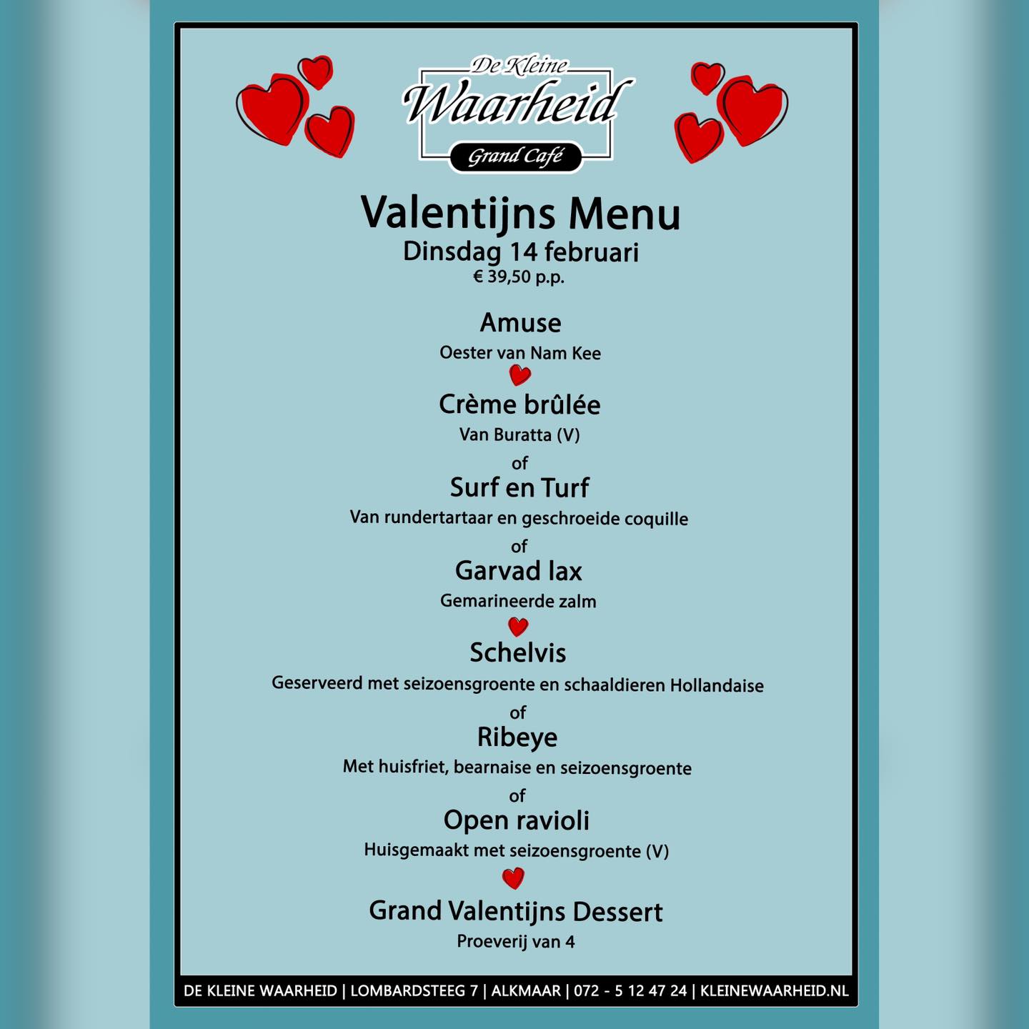 Zoek je een alternatieve locatie om te dineren met je lief? Ga eens langs De Kleine Waarheid. Hier kun je smullen van een 4-gangen diner met bijvoorbeeld oester van Nam Kee, Gravad Lax, Surf ’n Turf, schelvis, ribeye en natuurlijk een grand dessert.