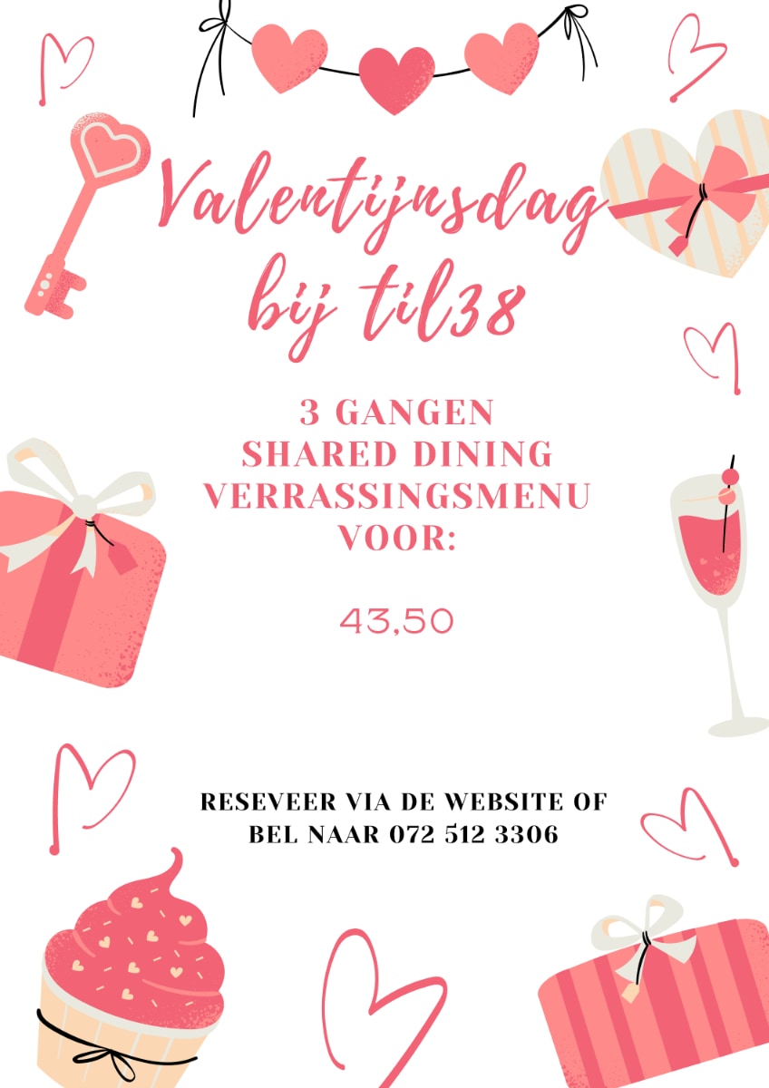 Houden jij en je Valentijn van een verrassing dan ga je naar Til38. In het knusse restaurant krijg je een 3-gangen shared dining verrassingsmenu voorgeschoteld.