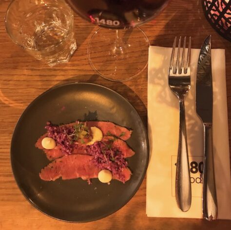 Amusetour 2019: “Met de tartaar van zeebaars, limoenmayo, schuim van komkommer en een krokantje van kletskop, schotelt 1480 een gerechtje voor dat in een sterrentent niet zou misstaan. Genieten!”